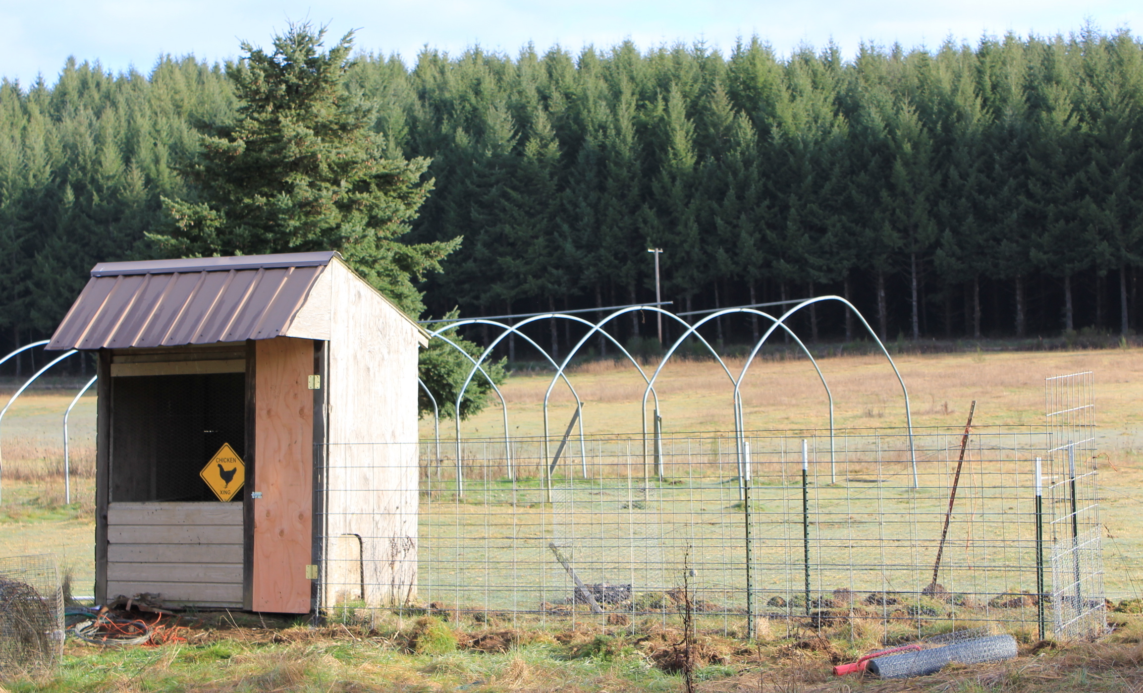 • The ‘hoops’ in the background are our hoop house/ green house structure. If you look closely you’ll see they’re in the background, not on the run itself.
