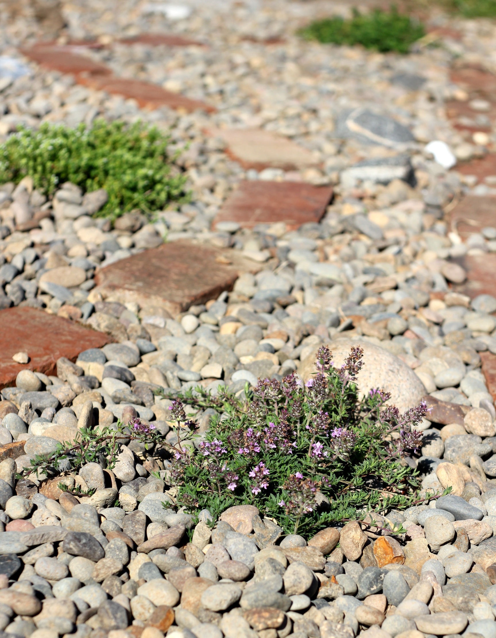Thyme growing in an herbal pathway