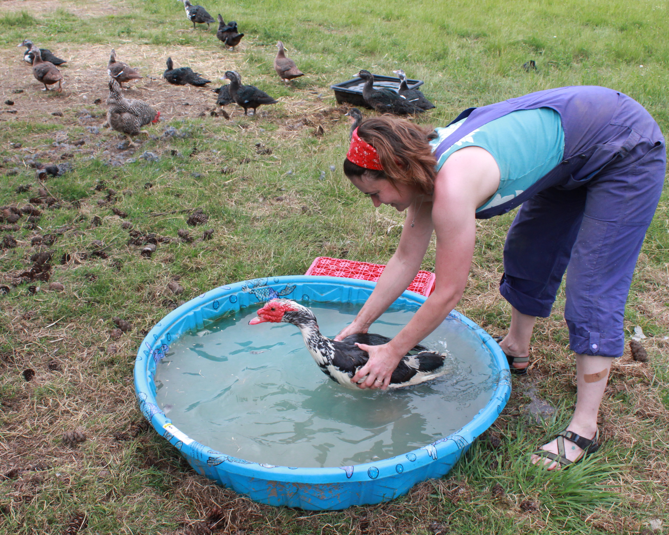My muscovy drake won't bathe, so i gave him a bath.